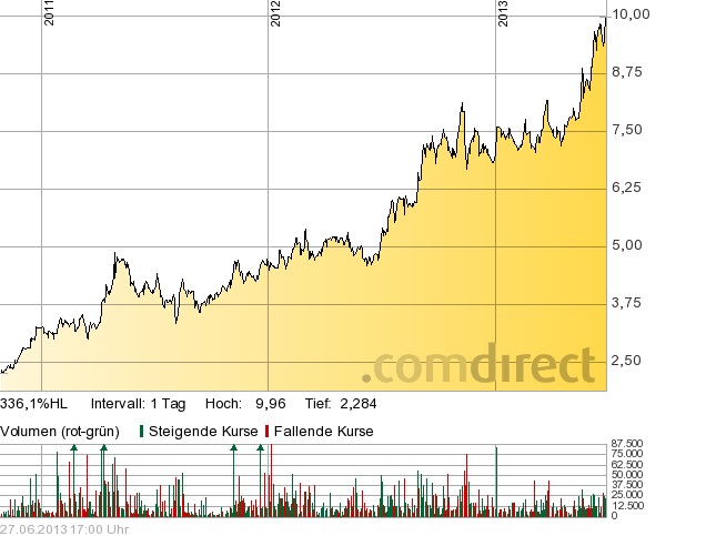 Ich glaube aber, dass wir bereits im Gesamtmarkt den Tiefpunkt erreicht haben, und denke, die 9 Euro werden halten.