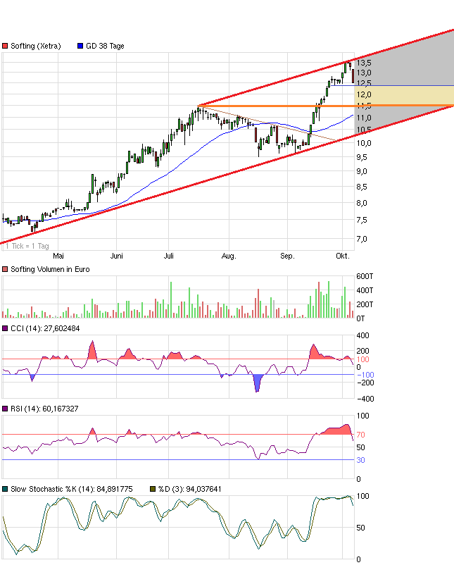 ich auch schon im Visier. Allerdings dann mit Kursziel 14 Euro, weil ich die Softing tendenziell ein wenig abbauen möchte, weil der Anteil an Softings im Depot etwas zu hoch ist.