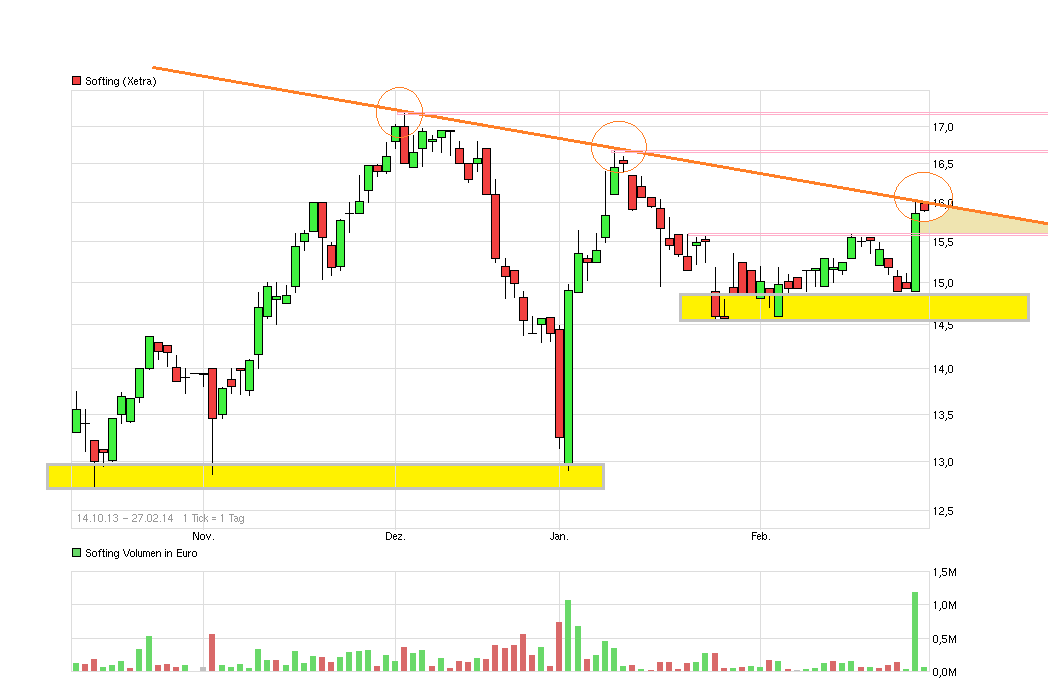 Stimmt ;););) Schon sehr, sehr, sehr auffällig der Zeitpunkt für dieses Interview genau an dieser charttechnisch heiklen Stelle (Berührung der blauen Aufw.trendlinie). Da ja bekannt ist wie marktenge Werte auf kulmbacher Trommelei in "DerAktionär-Online" reagieren, wo halt viele passivdenkende Kleinanleger ständig täglich reinschauen und schnell auf Werte aufspringen (möglichst alle zeitgleich) die lobend erwähnt werden ohne recht zu wissen was man kauft, ist die Reaktion heute fast schon "normal". Würde mich nicht wundern, wenn dieses Interview schon seit einigen Tage abrufbereit in der Schublade gelegen hätte und Förtschs seriöse Kulmbacher Flüstertruppe für solche zeitlich exakt platzierten Gefälligkeitsinterviews (wo der CEO und Großaktionär "uneigennützig" Kurse von 20 und deutlich mehr verspricht und ungefragt erzählt er würde keine Aktien bei 20 verkaufen, wo CEOs seriöser Firmen doch normalerweise dazu neigen keine Prognosen für die eigenen Aktien zu machen) auch entsprechend "entschädigt" würden von ihrem Interviewpartner. Oder sollte man eher sagen ihren Auftragsgeber? Ich will damit garnichts negatives gegen die Firma oder den Kurs sagen. Nur das Timing finde ich halt "auffällig", oder nennen wir es einfach "clever".