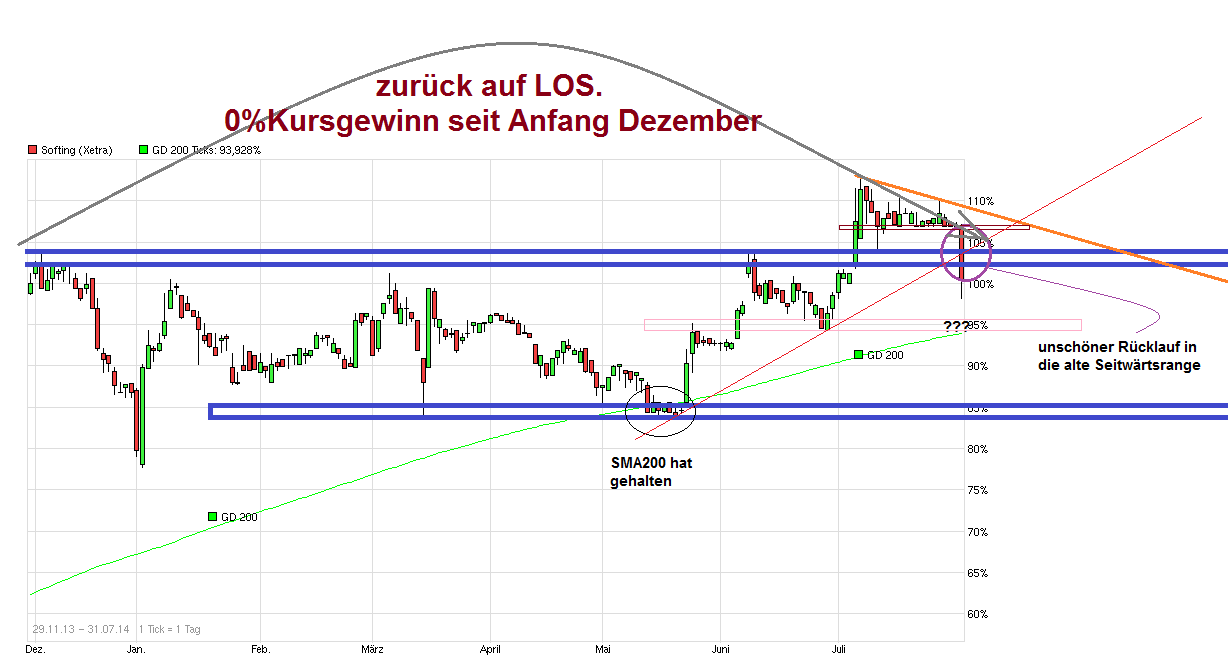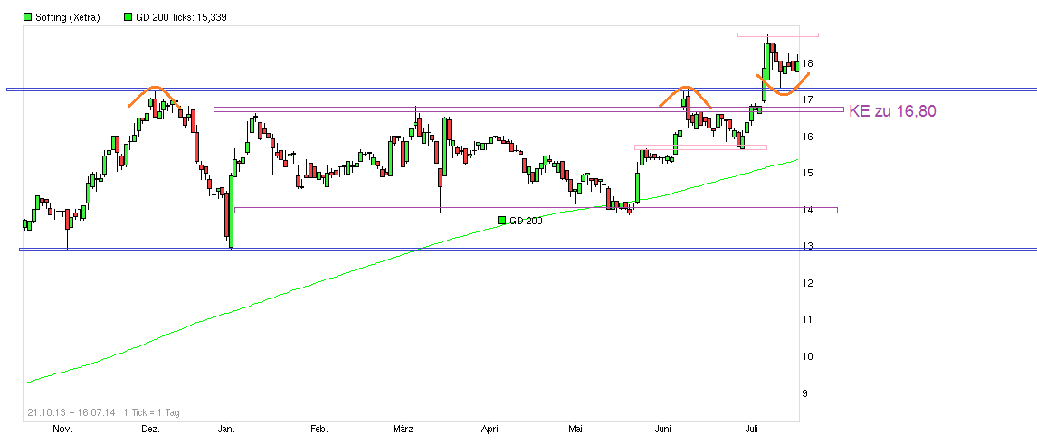 Das 2014 aquisitionsbedingte Integrationskosten einmalig anfallen wurde schon mehrfach in den letzten Monaten kommuniziert von Softing und kann sich jeder auch selber denken, da generell mit Aqusitonen bestimmte Kosten einhergehen. Selbst die Investoren die jüngst die KE mirgemacht haben bei 16,80 waren sich dessen voll bewußt. An der Börse wird Zukunft gehandelt. Von daher sollte vom Standpunkt Mitte 2014 inzwischen wichtiger sein was 2015 oder 2016 passieren wird. Und da klangen die jüngsten Aussagen weiterhin solide. ( CEO Trier:"...Dieses Jahr wird aufgrund der diversen Einmalkosten davon nach unten abweichen. Grundsätzlich ist unser mittelfristiges Ziel unverändert eine Annäherung an eine EBIT-Marge im Bereich von 15 Prozent. Von 2015 an sollten wir wieder zweistellige Margen bieten können. Hinzu kommen Skaleneffekte, die den Weg in Richtung 15 Prozent weiter verstärken werden..." ). Von daher rechne ich nicht damit, daß der Kapitalmarkt wegen der Integrationskosten sich wuschig machen läßt. Aber es könnten natürlich unabhängig von den Integrationskosten mal Rücksetzer kommen aus anderen Gründen. Um die 17,20/30 sollte aber erstmal jetzt eine gute horizontale Unterstützung liegen. Sollte die Marke nicht halten wäre der jüngste KE-Kurs von 16,80 und die SMA200 im Auge zu behalten. Sollte der Kurs nochmal an diese Durchschnittslinie ranlaufen ohne negative Firmennews im Rücken, dann wäre ein Kauf um diese Region herum wohl kein schlechter Gedanke. Allerdings hoffe ich mal damit läßt man sich erstmal wieder etwas Zeit und kümmert sich lieber weiter um Kurse jenseits von 18+x ;)