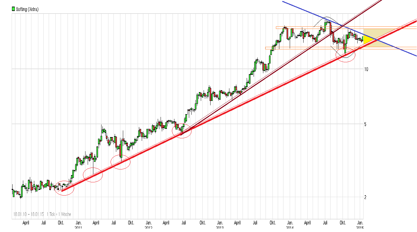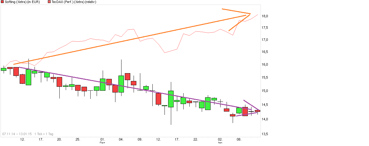 Ich glaube daher nicht, dass Softing vom Ölpreisverfall stark beeinträchtigt wird, sofern sie für die Ölbranche Produkte mit einem echten Mehrwert im Programm haben und es verstehen, diese entsprechend anzubieten und zu bewerben (das kann ich jetzt allerdings nicht beurteilen). Und es ist wichtig, sich auf die Mentalität in der Ölbranche richtig einstellen zu können. Wie oben bereits gesagt, läuft da einiges ganz anders als bei den Automobilisten. Es ist essenziell für Softing, mit diesem Mentalitätsspagat umgehen zu können, da die ja beide Branchen bedienen.