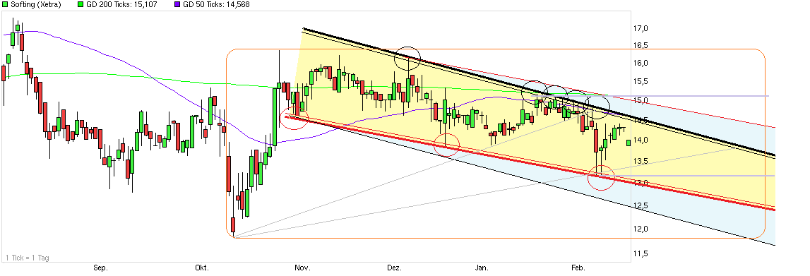 Insgesamt ist Softing aus meiner Sicht aber heute genausosehr wie noch vor einer Woche ein tolles Pferd, dass man aus meiner Sicht optimistisch ins Rennen schicken kann. Sprich: ich werde momentan von meinen Softing Beständen sicher kein einziges Stück verkaufen--schon gar nicht zu einem Zeitpunkt, wo es Leute aus eigener kurzfristiger Unsicherheit rausschüttelt und der Kurs entsprechend angeschlagen ist. Solange sich an der fundamentalen Langfristperspektive nichts geändert hat, gibt's hier aus meiner Sicht keinen Grund zur Panik. Die Geschäftsfelder von Softing sind zyklisch und damit muss man leben können, wenn man hier investiert. Sonst schüttelt's einen immer in den Downcycles raus.