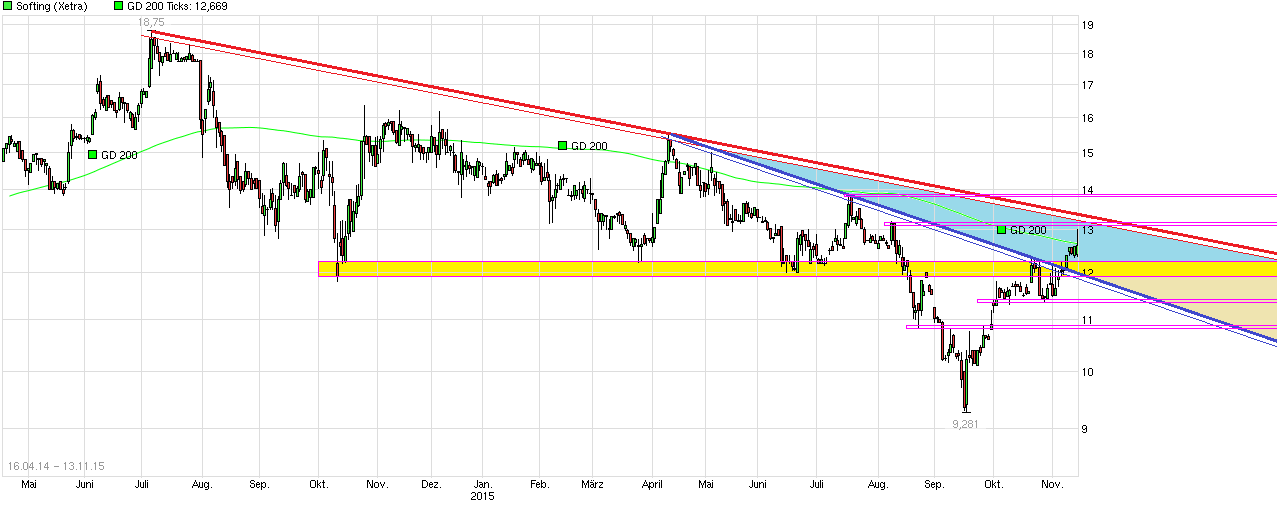 10.08.2015 - Softing will 2016 die Gewinne steigern - CEO Wolfgang Trier im Gesprächinvestor.softing.com/fileadmin/sof-files/...gabe_5_Softing.pdf "...Investoren sollten das Jahr 2015 unter dem Aspekt des Zahlenwerkes abhaken. Softing befindet sich in einem Übergangsjahr. Im Jahr 2016 will das Unternehmen bei Umsatz als auch Ertrag wieder mehr Gas geben. „Ich halte ein Umsatzwachstum von ca. 10 % im nächsten Jahr für realisierbar. Zudem wollen wir die EBIT-Marge als auch den Gewinn deutlich steigern“, sagt Trier. Der Firmenchef verweist auf den aktuellen Auftragseingang. „Unser Auftragseingang ist im 1. Halbjahr massiv angestiegen. Er wächst schneller als der Umsatz. Wir schaffen eine gute Grundlage, um 2016 wieder dynamisch zu wachsen.“ Softing dürfte 2016 dann einen Umsatz von ca. 90 Mio. Euro erzielen. „Aufgrund neuer Produkte im Bereich Automotive wird die Qualität unserer Umsätze und somit die Marge steigen“, erklärt Trier.."