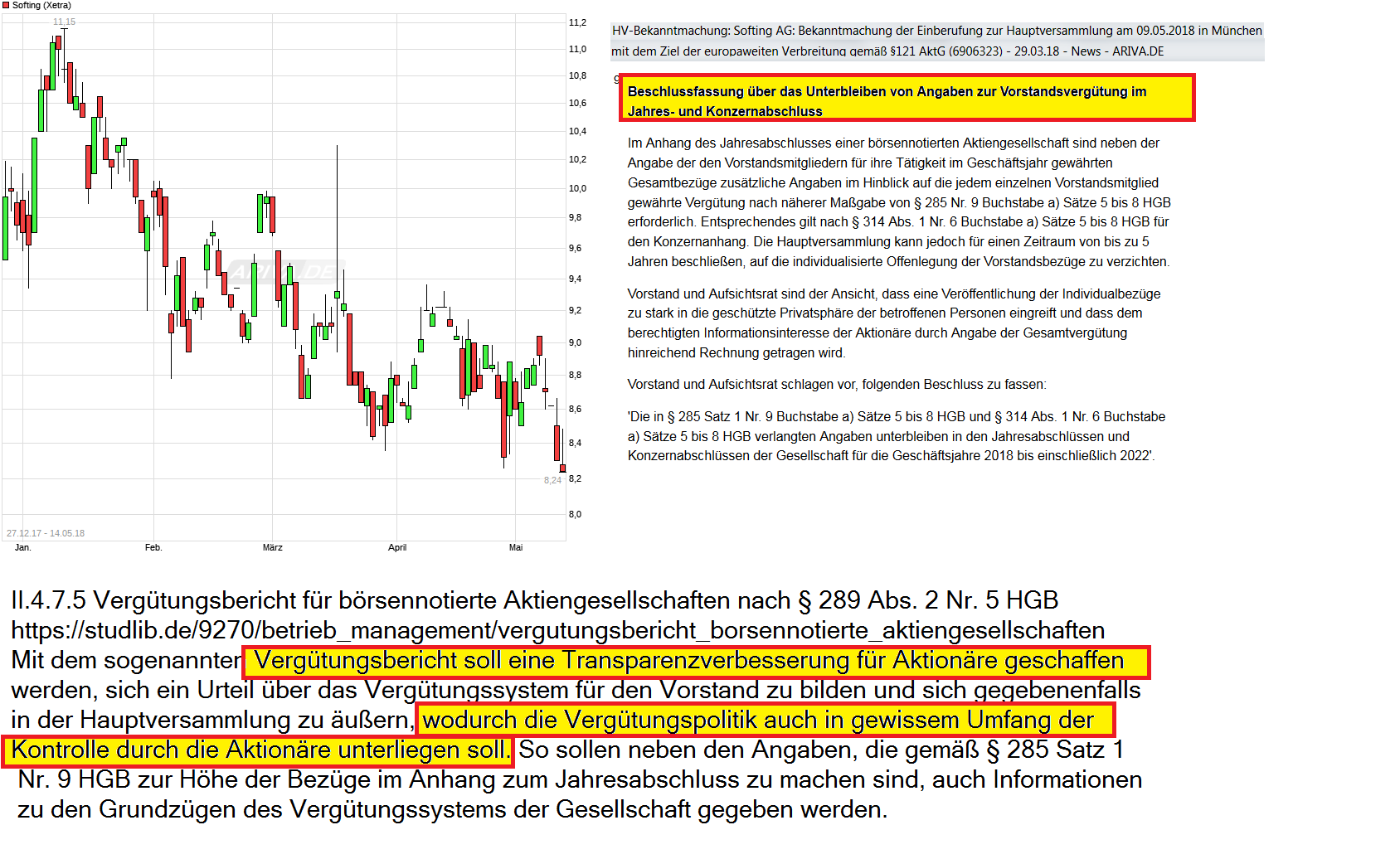 Mir passt diese Machtstellung des CEOs überhaupt nicht. Dazu kommt, dass der Markt so eng ist, weil die Umsätze in der Aktie überhaupt nicht passen. Kein Wunder, für Softing interessieren sich wohl auch nur noch die ganz alten Aktionäre, die jetzt noch im Plus sind.