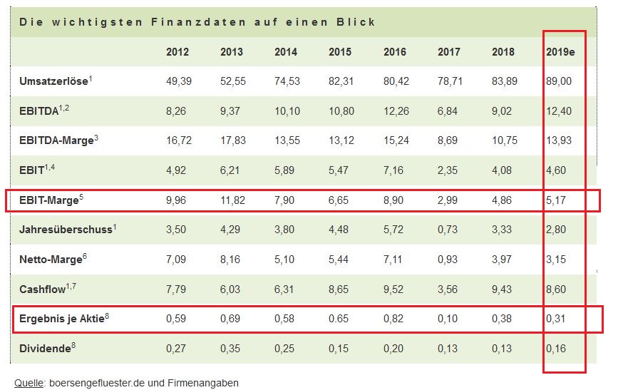 Gewinn pro Aktie in Hj.1 19 => 13 Cent