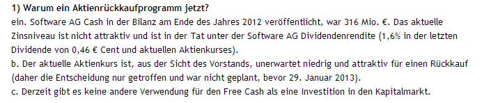 Woher nimmst Du dein Wissen das das die Software AG am Xetra Schluß immer Aktien kauft??