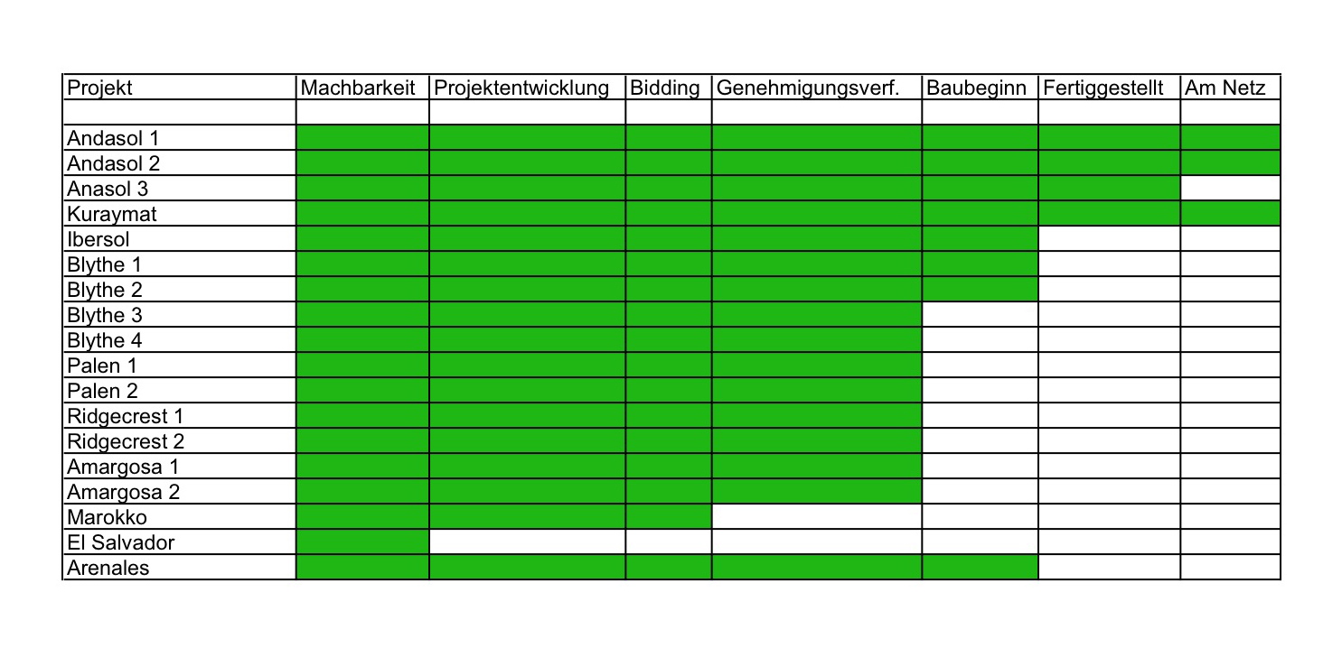Den Bau des Kraftwerks soll OHL Industrial als Generalunternehmer übernehmen, während die Solar Millennium Gruppe über ihr spanisches Tochterunternehmen Milenio Solar die Projektentwicklung durchführen soll. Außerdem ist vorgesehen, dass die Technologietochter Flagsol GmbH im Auftrag des Generalunternehmers die Verantwortung für den Bau des thermischen Speichers und des Wärmeträgerflüssigkeits-System übernimmt. Der Bau soll bereits im 2. Quartal dieses Jahres beginnen. Parallel soll die Finanzierung für das Kraftwerk abgeschlossen werden.