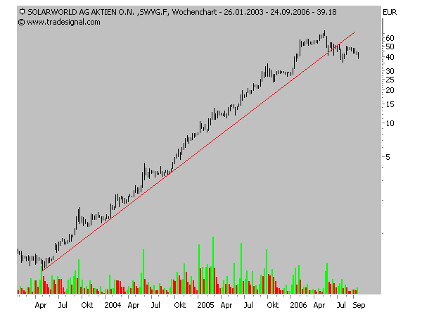 Dies auch vor dem Hintergrund der zuletzt guten Nachrichtenlage beim Bonner Solarunternehmen. Solarworld meldete neue, langfristig laufende Verträge mit italienischen und - wesentlich wichtiger für die Wachstumsphantasien - chinesischen Abnehmern im Gesamtwert 350 Millionen Euro für den China-Austrag sowie einem zweistelligen Millionenbetrag für das Italien-Geschäft.
