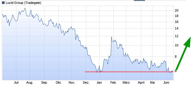 Das Problem an der Sache: Ayar erwirbt dafür insgesamt 265,7 Millionen neue Anteilsscheine, was einen Preis von 6,80 US-Dollar pro Lucid-Aktie impliziert. Der Schlusskurs der Aktie lag am Mittwoch allerdings bei 7,76 US-Dollar und damit höher. Das freut die Aktionäre offenbar ganz und gar nicht: Der Aktienkurs des US-Newcomers brach ein.