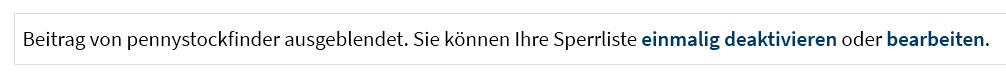 Mir ging dieser Tage ein verrücktes, sicherlich auch sehr unrealistisches Szenario durch den Kopf. Aber ich wollte es Euch nicht vorenthalten. Ich dachte mir: Vielleicht gibt es irgendwo da draußen einen Verrückten, einen Spinner, der zu viel Geld übrig hat. Angenommen, der würde sich in diese Aktie verlieben (soll man nicht machen, schon klar) und kauft mal gepflegt 100 Millionen Spineway-Aktien zu 0,002 Euro, zusammen also 200.000 Euro plus Gebühren. Warum ? Weil er mit seiner Kohle nichts anzufangen weiß, oder auch einfach: weil er's kann. Und weil er's hat, natürlich. Dann wird diese Aktie eines Tages aus welchem Grund auch immer (durch die Reddit-Boys oder irgendwelche Gerüchte, ob sie nun stimmen oder nicht, spielt keine Rolle - Börse liebt schließlich Fantasie) auf 1 Euro hochgezockt. Danach gehts aber genau so schnell wieder runter, weil eben alles nur ein Gezocke ohne Substanz war. Am abend stehen wir bei den "bewährten" 0,002 Euro. So, und jetzt gibt es 2 Möglichkeiten: der Typ kriegt das Hochgezocke mit, und verkauft im Idealfall bei 1 Euro seine 100 Mio. Aktien. Und tätigt dadurch das Geschäft seines Lebens. Oder aber er kriegt es nicht mit und dann gibt es erneut 2 Möglichkeiten: Er guckt am Abend nur auf den Kurs, und denkt sich: aha, nichts passiert, und legt sich schlafen. Oder aber er kriegt es abends mit, was tagsüber abgelaufen ist ... 100 Millionen verpaßt. Dann bleibt wohl nur noch die Kugel. Ich weiß, das Szenario ist sehr sehr unwahrscheinlich. Aber ich wette alles was ich habe: es ist viel viel größer, als die Chance auf einen Sechser mit Superzahl beim Lotto (da ist sie nämlich 1:140 Millionen). Achja, noch was: Nein, ich habe nicht von mir gesprochen, ich werde hier keine 200.000 Euro versenken, das Geld hab ich nicht und selbst wenn ich es hätte, würde ich es dennoch nicht tun (es sei denn, ich hätte bereits 100 Millionen auf dem Konto, was ich leider aber auch nicht habe) ;-) Mir reichen meine 1 Million Stücke, im günstigsten Fall würde ich vielleicht nochmal auf 2 Mio. verdoppeln, aber auch nur, wenn der Kurs passen würde (max. 0,002 Euro). Hätte aber auch nichts gegen steigende Kurse einzuwenden. Mein Kurs-Ziel, wie erwähnt, bleiben erstmal 1 Cent. Viel Erfolg Euch allen.