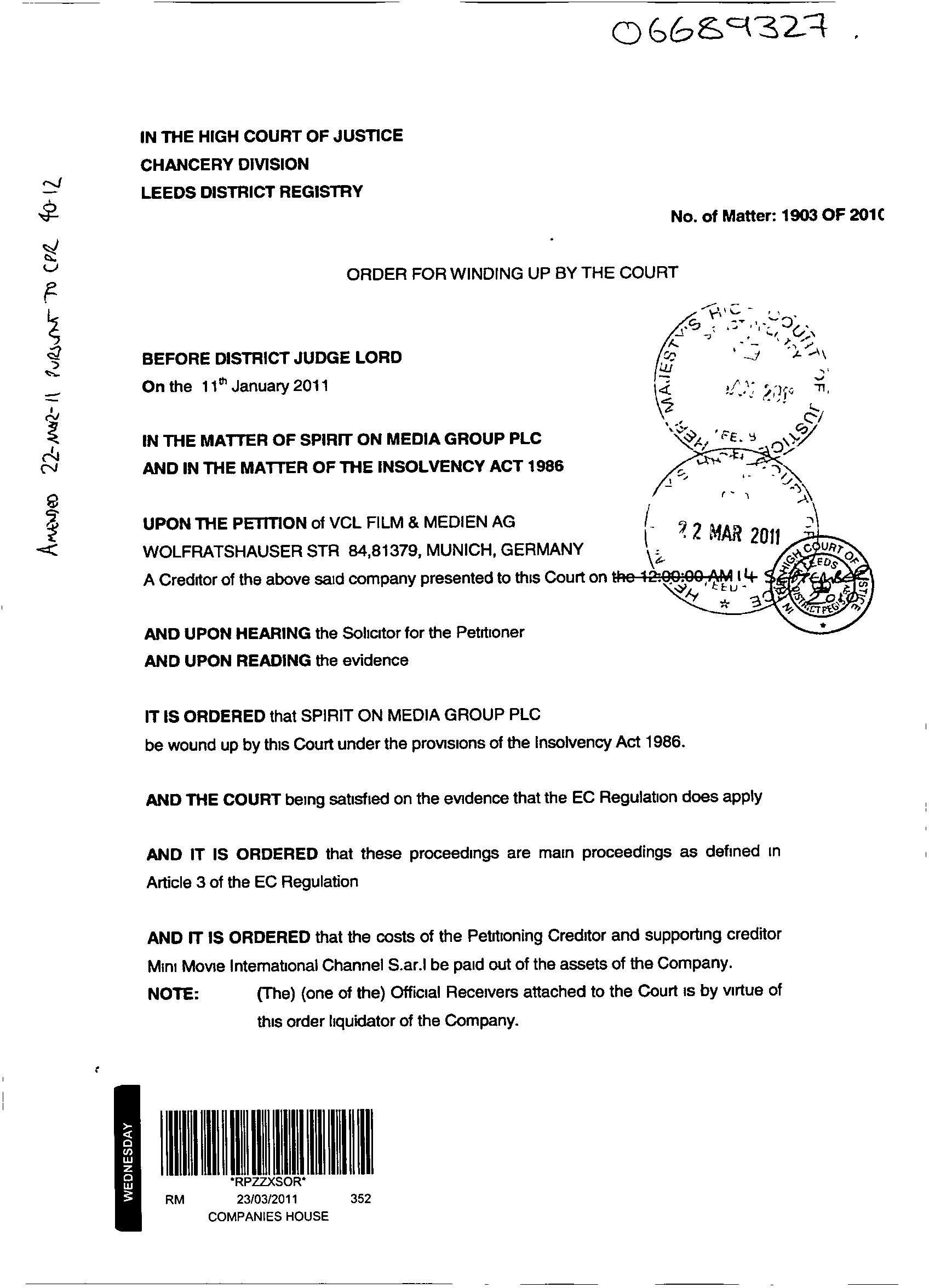 An der Lage hat sich nix geändert. Ich habe die Kopie nur hochgeladen, weil dort das genaue Datum ersichtlich ist. Das hier seit einiger Zeit Ermittlungen wegen Betruges laufen ist doch nicht neu (deshalb auch die Winding Up Order). Ich gehe davon aus, dass die Klage abgewiesen wird, was für SOM bedeutet, dass sie ihre Geschäftsaktivitäten wieder aufnehmen darf (beispielsweise auch die Homepage wieder mit Inhalt füttern). Verbessert mich bitte sollte ich irgendwo falsch liegen!