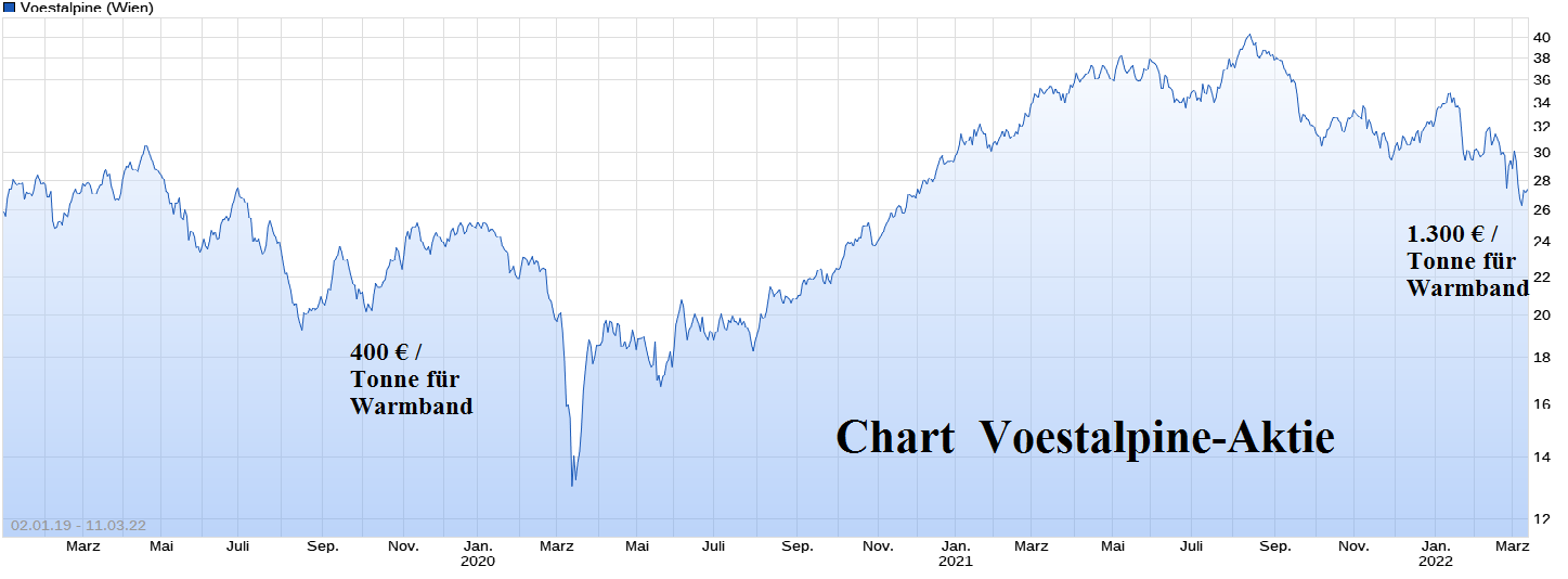 Die Stahlnachfrage dürfte sich robust entwickeln. Für das Verarbeitende Gewerbe und das Baugewerbe ist die nun massiv sanktionierte russische Wirtschaft von untergeordneter Bedeutung.
