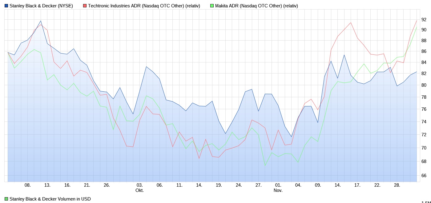 Wir haben in bestimmten Bereichen wie CRAFTSMAN Elektrowerkzeuge, Stanley Black - BLACK+DECKER Elektrowerkzeuge genug bekommen, aber nicht genug im DEWALT Bereich. Das hat sich im dritten Quartal geändert und es hat uns ermöglicht, sicherzustellen, dass wir den Aktionskalender für die Weihnachtssaison mit unseren großen Kunden wie Home Depot und Lowe's und einigen anderen, einschließlich Ace, einhalten, was uns in den letzten 1,5 Jahren nicht möglich war, insbesondere in Bezug auf DEWALT.