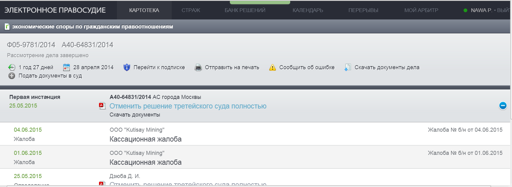 28 апреля 2014 года КР обратилась в Арбитражный суд г.Москвы за отменой Определения о Компетенции, а 12 августа 2014 года за отменой Решения.
