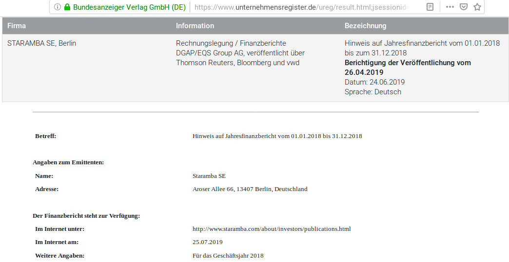 Umsätze von Staramba lösen sich in Luft auf - 05.06.19