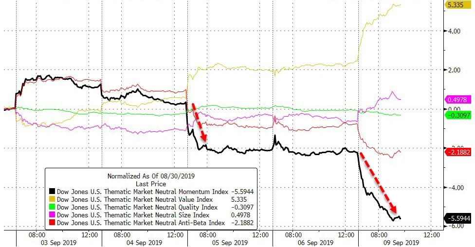 Very bad day for momentum-tilted quants. Long-short basket returns follow. Global effect.
