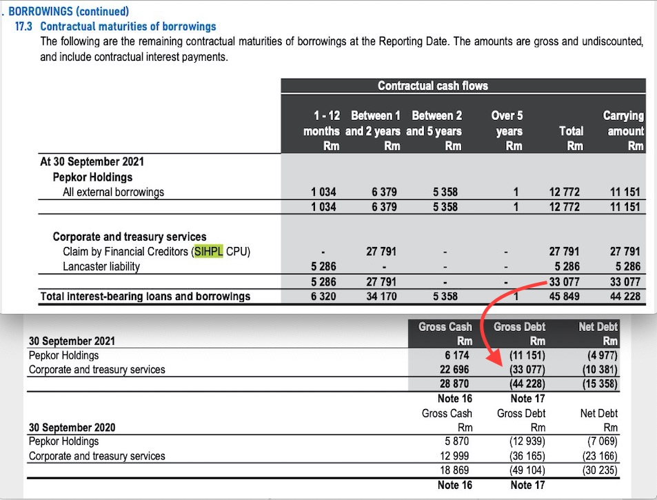 1. SHIPL CPU, ab SED die s155 Settlement Note zu 0% Zins: 27,791 Mrd € Stand 30.09.2022, da Euro Schuld war zu diesem Datum der Umrechnungsfaktor 17,57 ZAR.