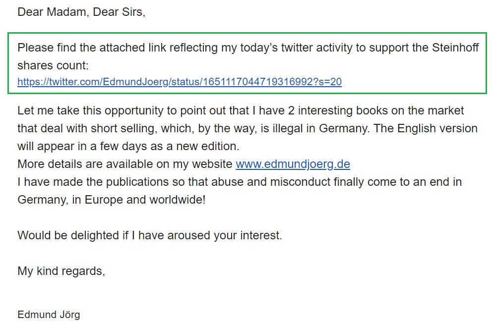 "Bezahlt eure Schulden und gut ist es mit Steinhoff. Ihr habt Steinhoff doch in die Pleite getrieben als Eigentümer."