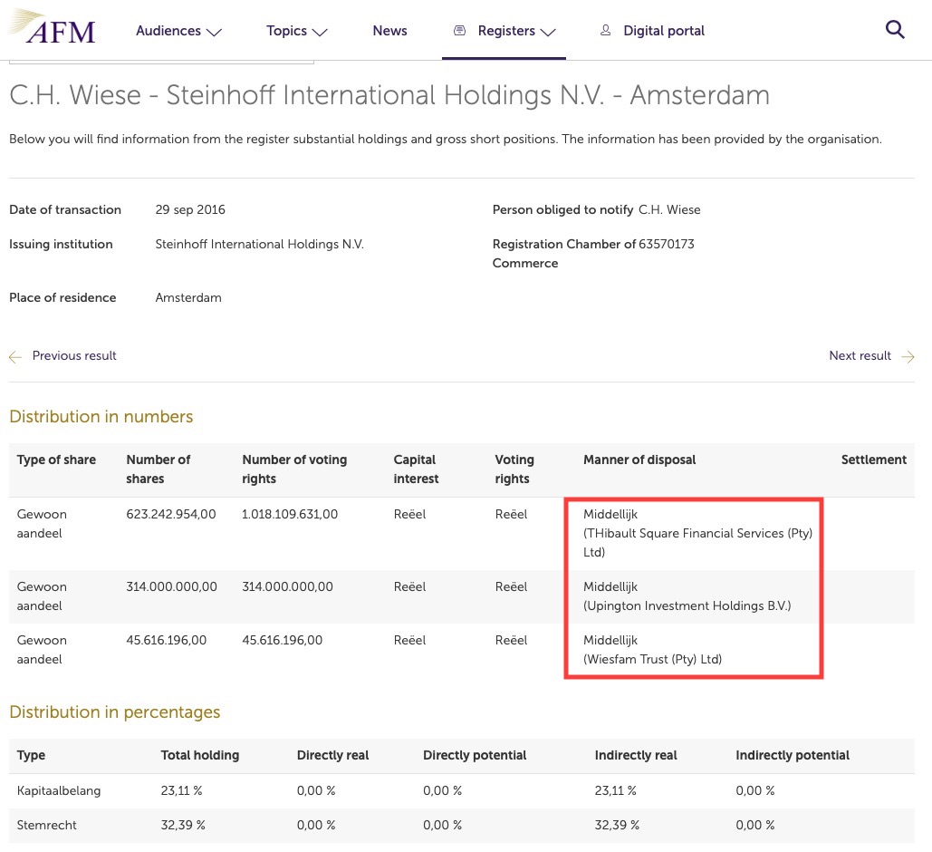 Diese Schulden sind wohl durch einen Teil der Steinhoffaktien von Wiese abgesichert gewesen, die noch bis Ende 2018 fast wertlos und dann von Upington an Titan verkauft wurden, damit Wiese mit großer Wahrscheinlichkeit den Betrag über den Schulden der Upington, den die SH Aktien vor dem Crash eigentlich noch absichern sollten, auch noch einklagen kann, natürlich im heimischen ZA: