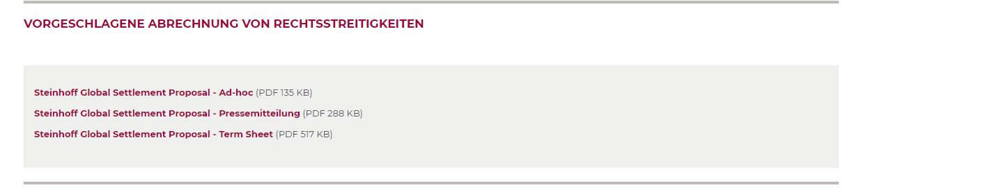 STEINHOFF GLOBAL SETTLEMENT VORSCHLAG
