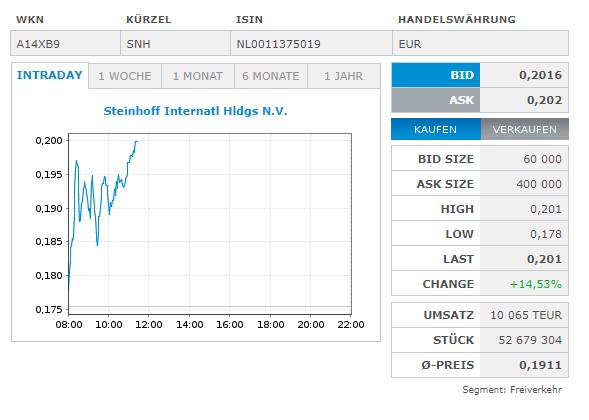 | 7 | 2.313 | Steinhoff Topco B.V. - CVR - die goldene Zukunft? | NeXX222 | KlauMich | 12.03.26 21:37 | |