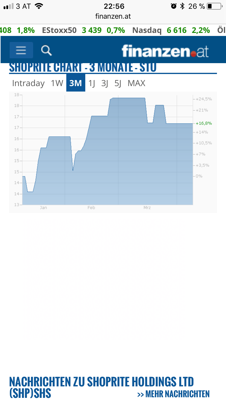 Ansonst kann ich nur sagen, als eigentlich eher konservativer Anleger (letztes Jahr plus 20%) bin ich hier nun risikoreich investiert, normale Regeln zählen hier nicht. (da laufen mit Sicherheit Dinge, welche 99,9% der Leute hier nicht blicken, ich natürlich auch nicht) Aber der kleine Rest der bleibt, da überzeugen die einzelnen wertvollen Beiträge hier, welche immer über drei Zeilen hinausgehen und oder sogar mit Qeuellen aus SA hinterlegt sind, deutlich mehr als der Blasenquark von den, na i nenne die mal jetzt Anderen.