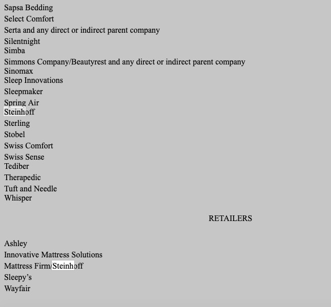 Außerdem ziehe ich Mattress Firm komplett ab, weil ich deren Umsatzzahlen einer Sonderberechnung unterziehe und in einem späteren Schritt wieder addiere: