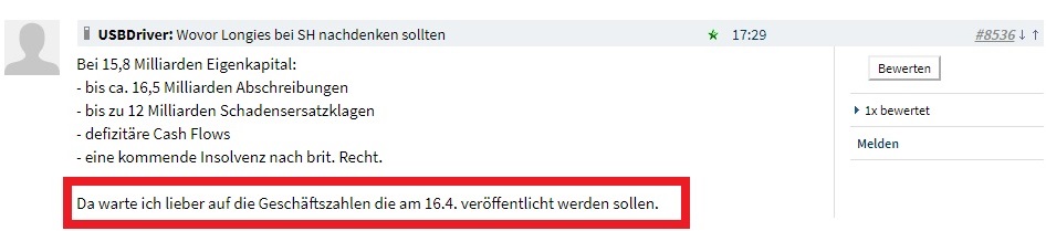Also bitte das ist gar nix wenn Steinhoff die Bilanz vorlegt. Der Kurs ist momentan immer noch ein Witz. Eine Kurssteigerung kann sehr schnell kommen.