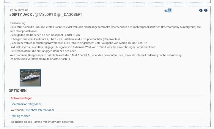 könnte einer, der schon im kontakt mit steinhoffs ir ist, nicht mal bezüglich eines überblicks über steinhoffs flüssiger mittel und guthaben nachfragen?