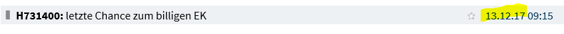 ich bin schon so oft gesperrt und angefeindet worden, hier im Forum und bei YouTube. Das ist wohl der Preis dafür, dass man sich öffentlich äußert. Bei FB ist es anders, dort stimmt der Umgang miteinander. Ich finde aber, dass man sich bei dem Kursdesaster von Steinhoff nicht noch gegenseitig an die Gurgel gehen, sondern mit Humor und Sachlichkeit diese für alle belastete Zeit überbrücken sollte. Es kommen bessere Zeiten und wer vernünftig diversifiziert ist, wird mit anderen Werten auch Geld verdienen, denn eine Alternative zu Aktien sehe ich derzeit nicht. Aber ich bin nach wie vor der Meinung, dass Steinhoff das zur Zeit beste Chancen-Risiko-Verhältnis aufweist.