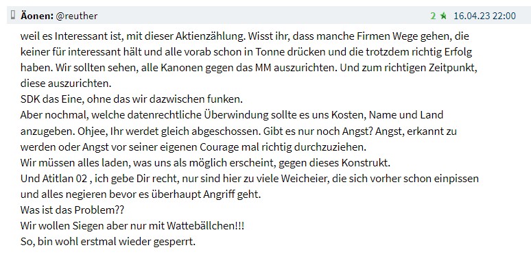 stark, dass sich dieses Management bekehren lässt und auf einmal sich um 180% wendet und endlich für die Aktionäre handelt.