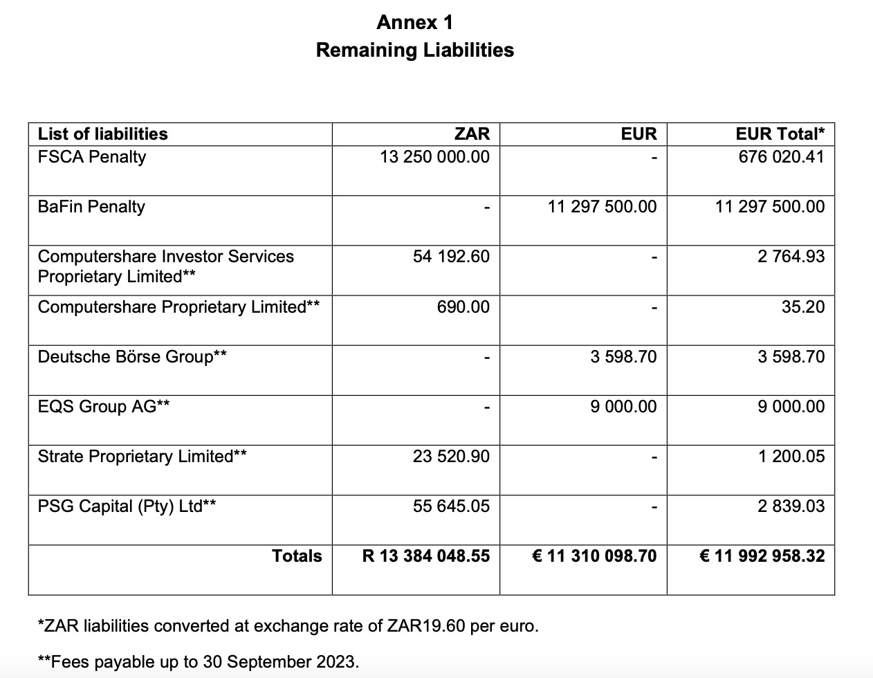 Nach der Abwicklung beträgt der Saldo (falls vorhanden) Null und es erfolgt daher keine Ausschüttung an die Anteilsinhaber. Sollte den Liquidatoren jedoch innerhalb von zwei Monaten nach der in Absatz 3.3 oben genannten Veröffentlichung bekannt werden, dass SIHNV über Vermögenswerte verfügt und keine weiteren den Liquidatoren bekannten Gläubiger bezahlt werden müssen, wird der Schlusssaldo an die Anteilsinhaber übertragen. anteilig zur Anzahl der von ihnen gehaltenen Anteile am Kapital von SIHNV zu einem Zeitpunkt, der so bald wie möglich bekannt gegeben wird, sobald den Liquidatoren der verbleibende Erlös bekannt ist, es sei denn, dies erfolgt innerhalb von zwei Monaten nach der in Absatz 3.3 oben genannten Veröffentlichung Ein Gläubiger von SIHNV oder ein Begünstigter hat gemäß Abschnitt 2:23b, Absatz 5 des niederländischen Bürgerlichen Gesetzbuchs Einwände gegen die Schlussabrechnung erhoben.