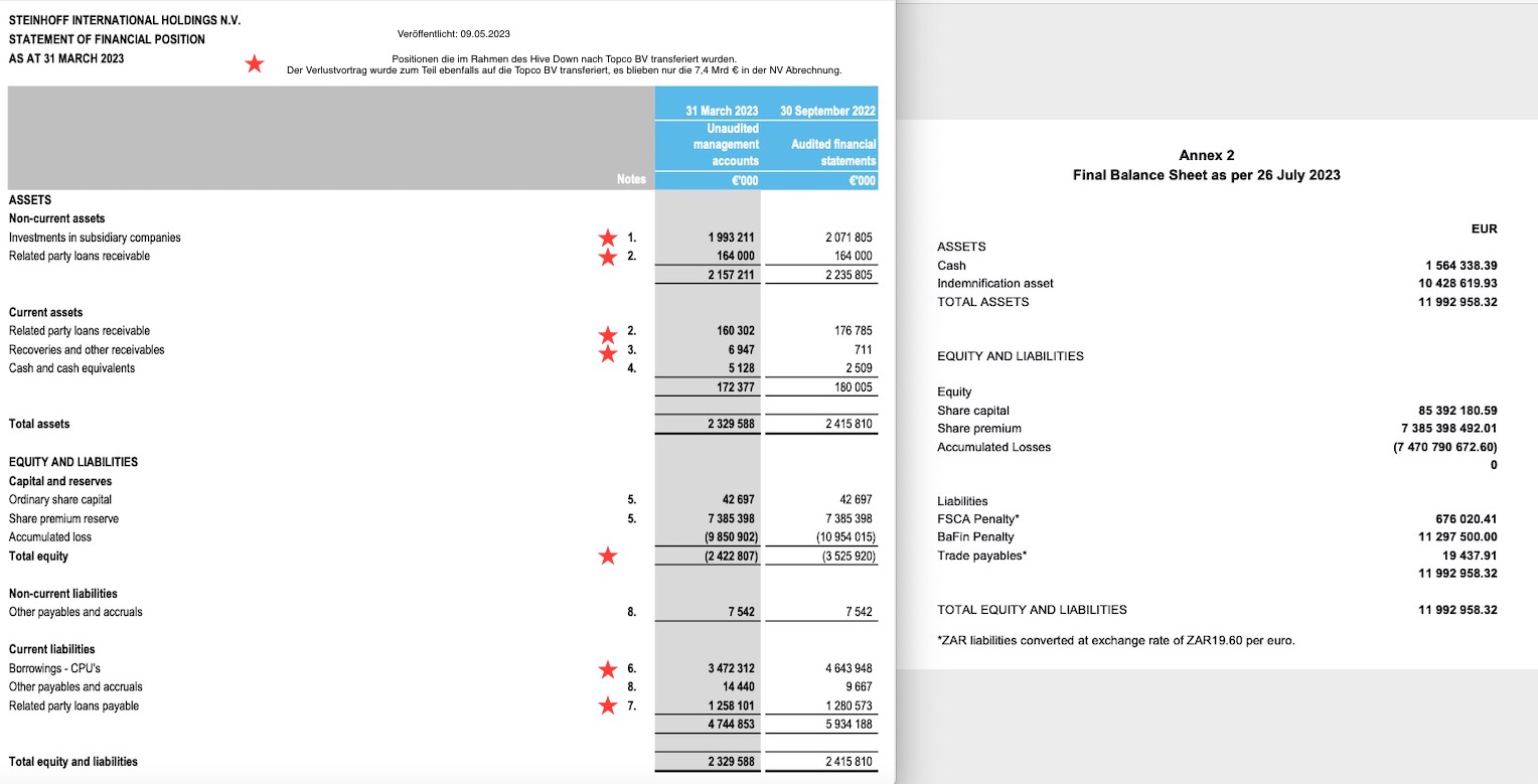 Im Screenshot habe ich mal die Positionen die in die Topco BV überführt wurden mit Stern versehen.