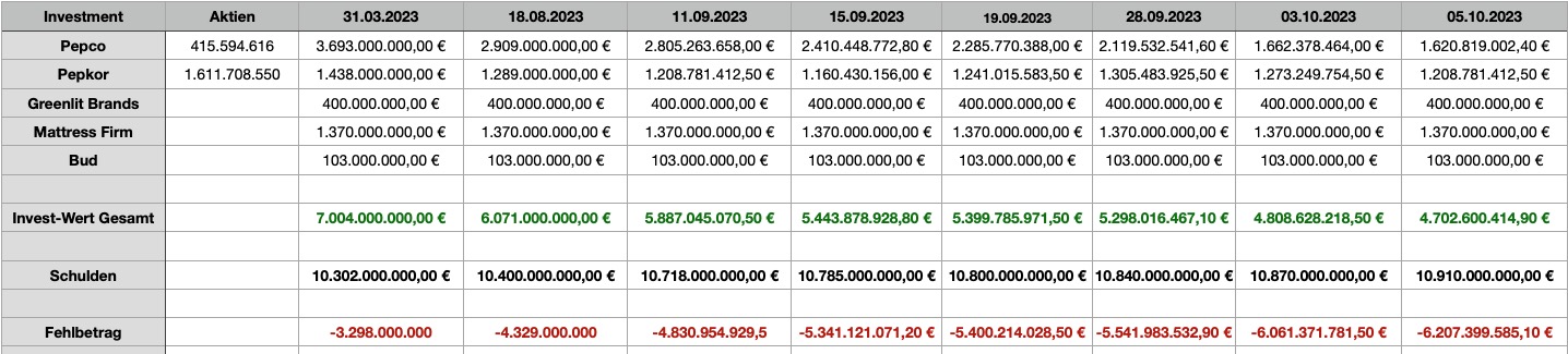Gegenüber vor 2 Tagen haben wir schon wieder ca.145 Mio € an Wert verloren.