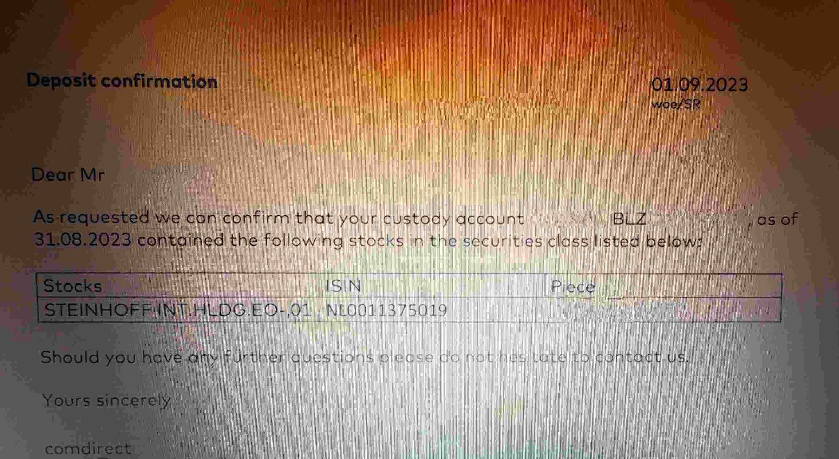 In die letzten Newsletter Steinhoff von SdK hat SdK erwähnt, dass Sie am 23. August alle Ihre Rechnungen im Fall Steinhoff erhalten haben.