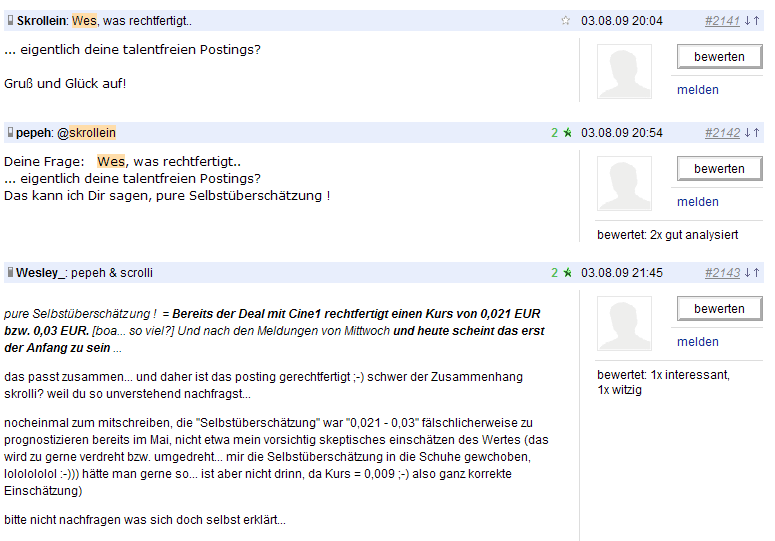 @Es gab ja User hier wie z.B. *Wes* (ok, meistens etwas langatmig, aber in der Sache auf den Punkt richtig), *elvis-lebt* und einige mehr die seit dem Beginn an, die Motion- Geschichte kritisch hinterfragten und fundiert, sachlich gewisse Ungereimtheiten erklärten!(denke da z.B. an die News-Veröffentlichungen usw.) (meistes sogar noch Quellenangaben) Insbesondere wurde ja auch immer wieder die Einzigartigkeit und Rentabilität des Geschäftsmodells Motions stark in Frage gestellt? Hätte der eine oder andere, auch diesen Meinungen etwas mehr Beachtung geschenkt, hätte er vielleicht seine Investmententscheidung nochmals überdenkt oder selber tiefer recherchiert. Okey, ich anerkenne auch an, dass natürlich in den Threads auch kräftig von den Protagonisten (die sich ja auch gepflegt zurückgezogen haben) für den Titel geworben und getrommelt wurde. Das dabei, der eine oder andere der Gier und Versuchung erlegen war, ist leider bedauerlich. *Alles wird gut einschlafen!*