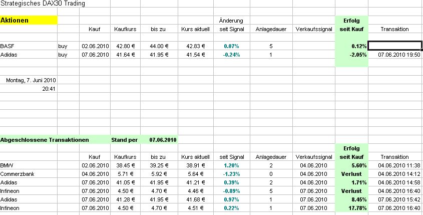 Vorgestellt wird ein Handelssystem mit den Indiaktoren Bollinger Bands und RSI. Trading erfolgt ausschließlich auf der Grundlage charttechnischer Signale und ausschließlich mit XETRA-DAX30-WERTEN. Die technische Analyse beruht auf der Überlegung, dass sich im Börsenkurs sämtliche Erwartungen, Befürchtungen und psychologischen Faktoren widerspiegeln und somit ein relativ zutreffendes Stimmungsbild liefert. Mit dieser Prämisse wird das Analyse-Verfahren sowohl in zeitlicher als auch in technischer Hinsicht für den Anleger wesentlich vereinfacht. Mit dieser Festlegung des Handelssystems als Instrument der technischen Analyse lassen sich insbesondere Analyse-Kriterien für hinreichend erfolgreiche Investments herleiten. Entscheidend ist jedoch, konsequent die Handelssignale umzusetzen - d. h. strenge Disziplin ohne wenn und aber, was meist nicht stringent beachtet wird. Schau´n mer mal, wie das Forum sich zu diesem Thema äußert.