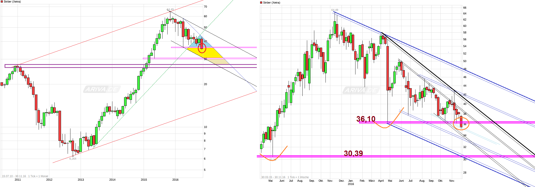 Letztendlich: Die Entscheidung muss jeder für sich treffen. Bernecker sieht die Kaufspanne zwischen € 33,-- und € 35.,--. Kann sein er liegt richtig, da die ING (Aktie von Ströer eingeben und unter Analsysen nachschauen ) ebenfalls von einer technischen Unterstützung von € 33,50 spricht.
