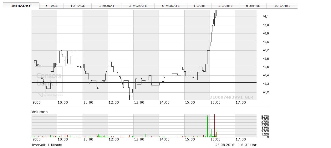 Daxstand und Stroerkurs ändern sich ja gerade minütlich (: und Du gehst vom Tradegatekurs aus? Aber ich gebe Dir Recht. Insgesamt hat Stroer aber in dieser Woche (im Verhältnis zu den Vorwochen) an Stabilität gewonnen und das obwohl der Dax nicht gut performt hat. In den Vorwochen hat es trotz eines sehr starken Dax bei Stroer oft Tagesabschläge zwischen 2 % und 3 % gegeben. Oft steigen oder fallen die Nebenwerte aus meiner Beobachtung heraus "gehebelt" mit dem Dax und ein mitlaufen mit dem schwachen Dax in dieser Woche betrachte ich als Zeichen der Stabilisierung/Bodenbildung. Nur mit einem tragfähigen Boden geht es up.(: Nur meine Meinung.