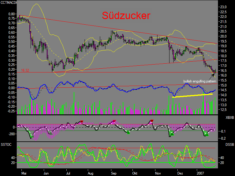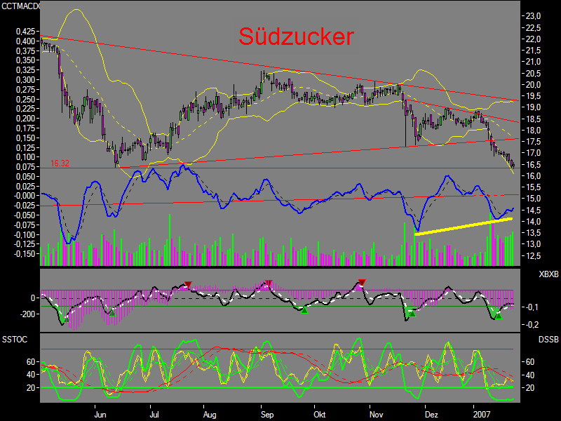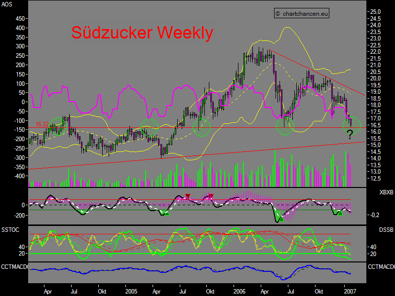 Die Südzucker-Aktie (Nachrichten/Aktienkurs) ist am Dienstag Händlern zufolge hauptsächlich wegen des Ausblicks des Managements auf das laufende Geschäftsjahr 2007/08 eingebrochen. Die Sonderabschreibung auf die Frankreich-Tochter Saint Louis Sucre in Höhe von 500 Millionen Euro für das Ende Februar abgelaufene Geschäftsjahr 2006/07 sei dagegen nicht der Hauptanlass zur Sorge, hieß es.