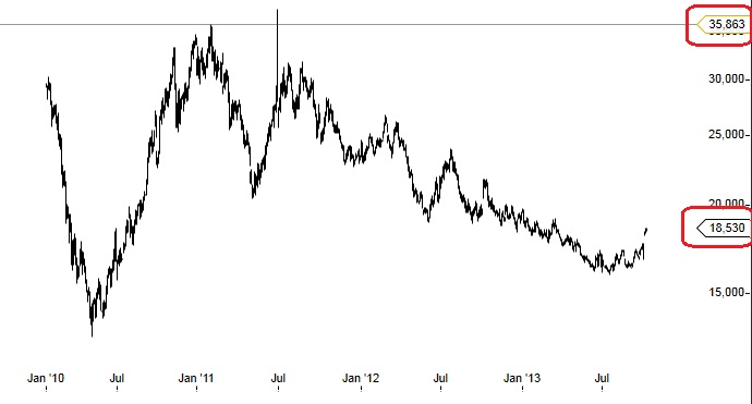 Nun gilt es noch die Zinsen und die Steuern davon zu bezahlen. 24,2 % gingen letztes Jahr vom Ebit weg, um dann beim Nettoeinkommen zu landen. Das selbe machen wir 2013/2014