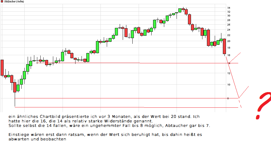 Tages oder 3 Tage oder mittel und langfristig Abverkauft! Südzucker wird heute sicher Tages oder 3 Tagesabverkauft sein! Mittel und langfristig Abverkauft ist meisten wo Aktien viel zu hoch gestiegen ist!