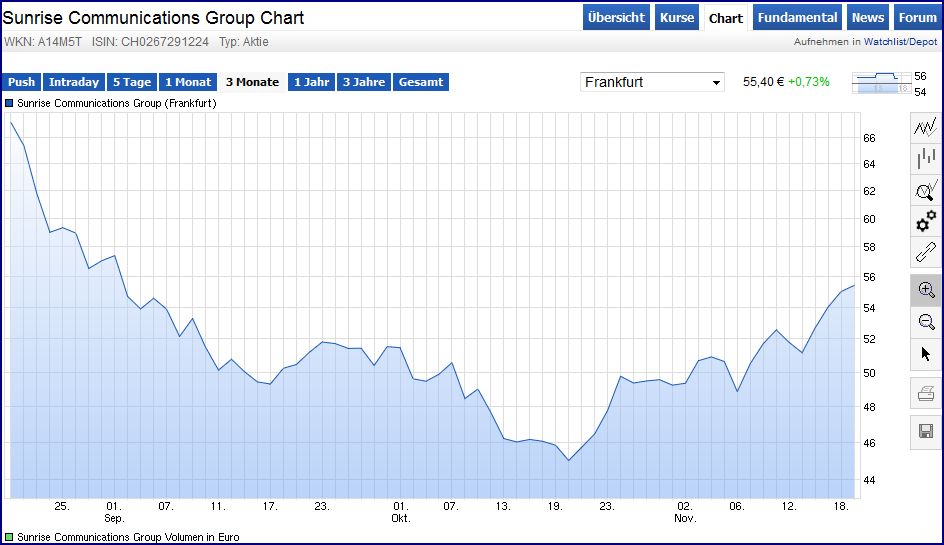 Da gehen offenbar viele Leute jetzt erstmal aus der Sunrise-Aktie raus und schauen was wirklich passiert. Also der Freenet-CEO hat ja in den letzten Jahren viele Geldvernichtungsmaßnahmen durchgeführt und den Freenet-Aktienkurs zuletzt damit wieder zurückgebombt auf ein Mehrjahrestief. Also wenn der zustimmen würde, daß Sunrise nun GPC schluckt, dann würde es zum einen bedeuten, daß nach einer notwendigen großen KE der Freenet-Anteil an dem Gesamtgebilde prozentual deutlich sinkt (und damit auch der Einfluß auf das dortige Management abnimmt) , falls man nicht weitere große Summen ausgibt um die KE mitzumachen , d.h. seine Anteilsgröße zu halten. Wäre aber Blödsinn, da man ja eigentlich die extreme Schuldenquote bei Freenet senken will ( 12.10.2018 www.welt.de/newsticker/bloomberg/...-koennte-bald-kommen.html "...Ein Verkauf der Sunrise-Beteiligung würde einiges Geld in die Kasse spülen....Das für Schuldenabbau zu nutzen würde Sinn machen, die Nettofinanzverbindlichkeiten sind mit dem 2,8-fachen EBITDA verhältnismäßig hoch..." ) und weitere Sunrise-Aktien nur über weiteren Pump gekauft werden könnten. Zum anderen dürfte der Sunrise-Aktienkurs darunter leiden, wenn man selber nicht mehr Übernahmeziel ist, sondern extrem teuere Zukäufe nun selber macht. Damit sinkt der Wert des Sunrise-Pakets von Freenet und das schlägt so indirekt auf den Freenet-Kurs durch, da das Sunrise-Paket einen erheblichen Anteil der Freenet-Marktkapitalisierung ausmacht. Von daher müßte Freenet eigentlich gegen den Kauf von UPC durch Sunrise sein, da er den Kurs drückt. Aber wie schon gesagt, Vilanek ist nicht gerade der smarteste Manager und neigt zu oft dazu Dinge falsch zu entscheiden, was man im desaströsen Kursverlauf der Freenetaktie ja auch sehen kann. Wie und wann will der denn Sunrise-Aktien VERKAUFEN, wenn man selber übernimmt anstatt übernommen zu werden? Vilanek sprach letzten Herbst noch im HB Interview davon "bald" zu verkaufen. Da warten viele Leute doch lieber jetzt auf eine mögliche große KE, wo man Massen an Aktien viel günstiger erwerben dürfte. Jetzt gehen die Kurse runter, inzwischen schon klar unter 80 Franken gefallen. Vor nicht langer Zeit stand man bei 94 Franken. Da hätte Freenet mal Sunrise-Aktien abstoßen sollen.