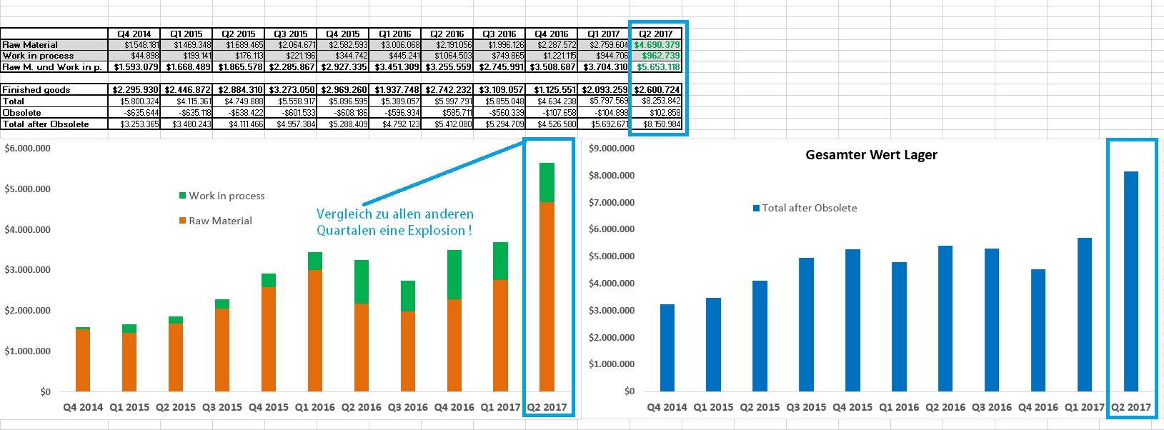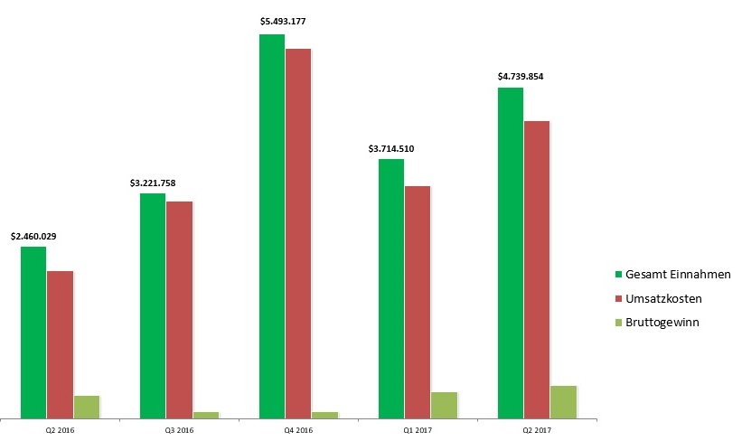 Der Exportumsatz mit aktuell 1.948.631$ ist nicht grad der stärkste der letzten 2 Jahre, dies ist aber zurück zu führen auf die kurze Pausierung des WILD Vertrages. Da WILD wieder im "Boot" ist, dürfte die letzte Lieferung ein schönen Batzen Geld ins nächste Quartal Q3 2017 hieven.
