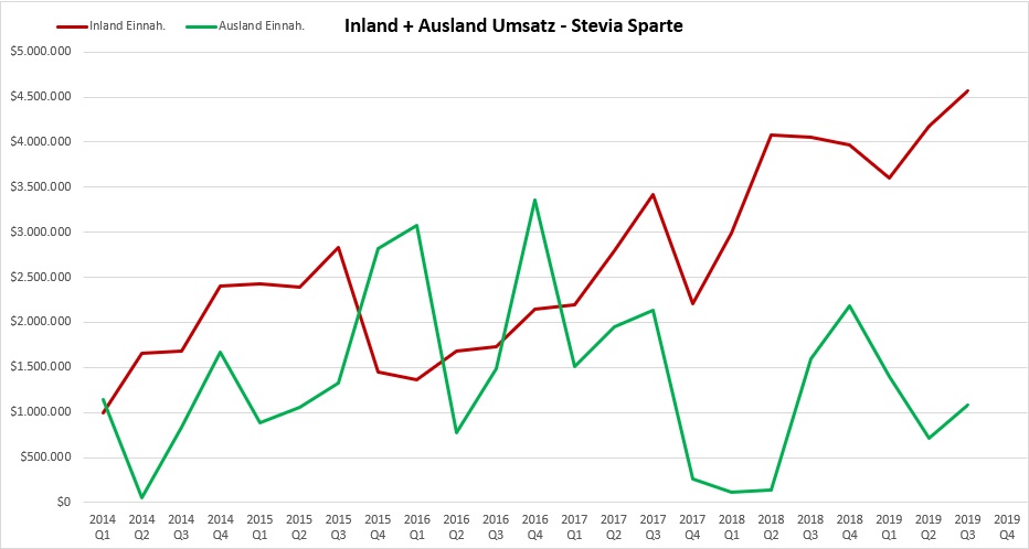 Sunwin steigt unglaublich schnell in den letzten Jahre, seit 4 Jahren hat sich der Umsatz nahezu verdoppelt im Stevia Segment von ehemals ca. 10 Mio USD auf ca. 20 MIO USD, Tendez steigend und auf 30 MIo USD gehend.