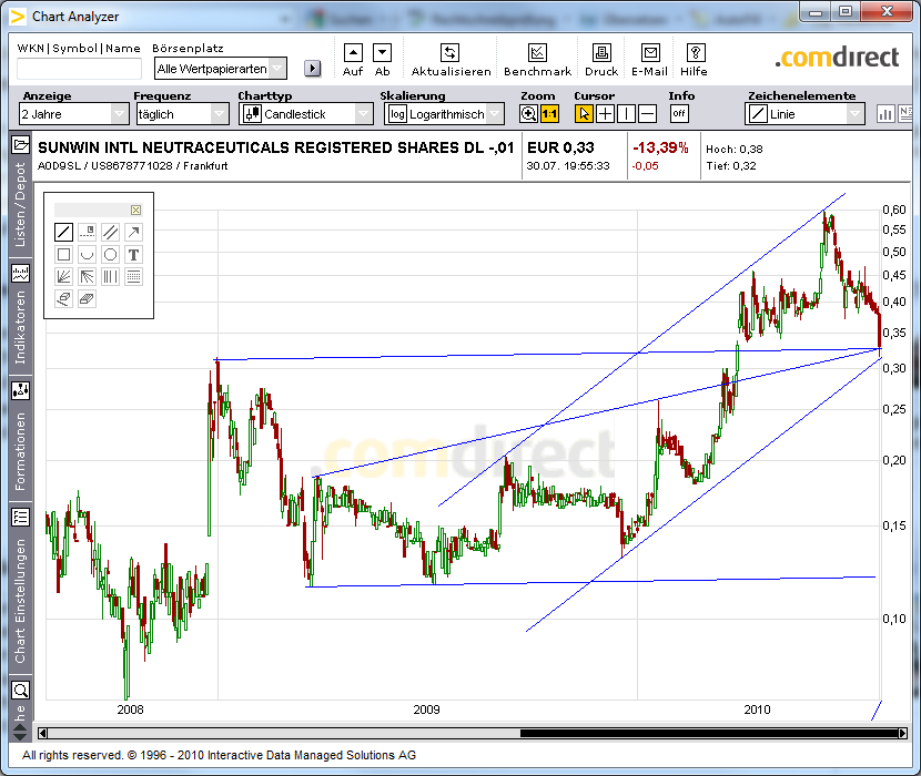 Für mich ist klar: Die Produktion stand ca. 6 - 7 Monate still, d. h. es wurden die Verkaufsaktivitäten aufgrund der verminderten Kapazität vermtl. auch deutlich herunter gefahren. Trotz dieses Umstandes wurde nur 26 % Umsatz im Stevia-Segment eingebüsst. Das aus den Gewinnen dieses Jahr Verluste geworden sind, ist aufgrund der Hochrüstung der Fabrik in Qufu nur selbstverständlich. Ich denke, erst mit der IFT2010 Austellung Mitte Juli wurde der Startschuss für das neue Sunwin Stevia Segment angestossen. Ein Hinweis dahingehend ist auch die WILD Flavors Homepage, die erst kurz vor der IFT2010 zum Thema "Sunwin Stevia TM" deutlich ausgebaut wurde.