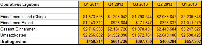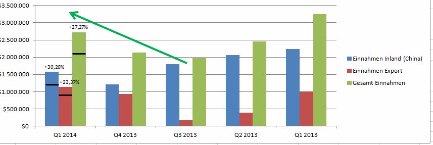 Ich halte mich heute kurz, Das Wachstum ist zu sehen, der Kurs hat schon geblutet und ab jetzt gehts definitiv rauf ! Man darf hier nicht Q1 2013 mit Q1 2014 vergleichen, sonst verwischt man sich die Augen.