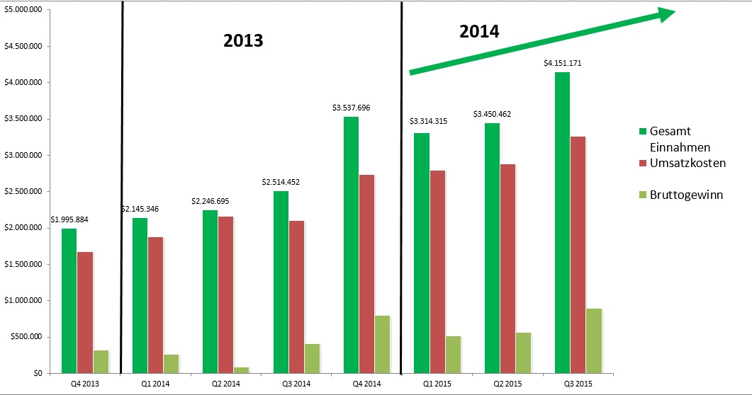 Hier mal als Beispiel das Chart und die Umssatzentwicklung nur vom Stevia Segment. 3.2 Mio $ sentspircht teilweise einem ganzen Quartal !!!