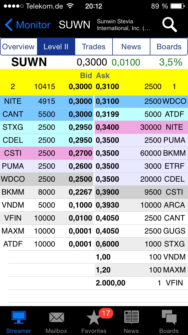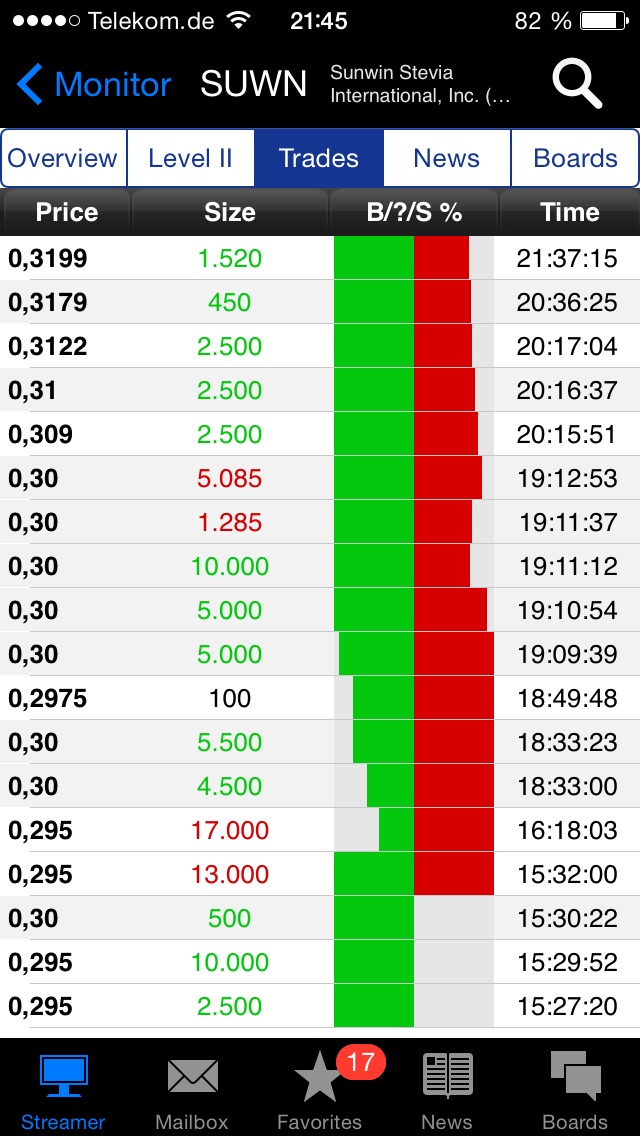 Eines noch: Denke, das man bei der Bewertung eines Unternehmens und insbesondere der Zukunftsaussichten nicht hauptsächlich in den Rückspiegel schauen sollte. Wenn ein junges Unternehmen mit zunächst wenig Geld in einem ganz neuen Markt Fuß fassen will, braucht das Leitungsteam viel Idealismus, Standhaftigkeit, Geld etc.. Sunwin Stevia hat seine Hürden genommen und sich zu einem Big-Player auf dem Stevia-Markt entwickelt. Ich schaue jetzt nicht mehr zurück; ich schaue nun durch die Windschutzscheibe und freue mich schon auf den wohl Ende Juli zu veröffentlichenden nächsten Q-Bericht bzw. den nächsten Jahresbericht!