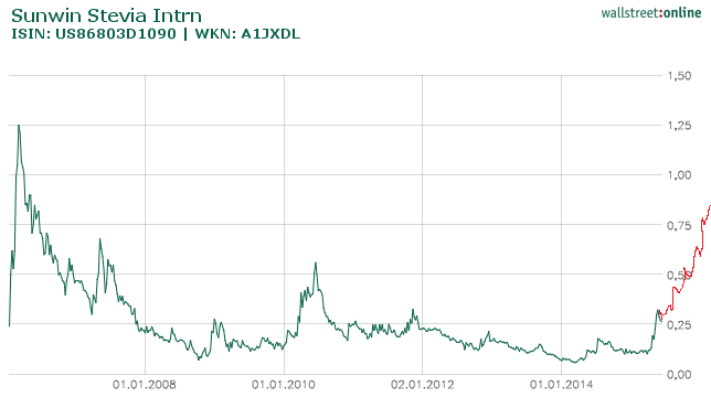 Es ist ja bekannt, dass Sunwin/Wild mit Domino Foods eine Vereinbarung geschlossen hatten, um ein marktfähiges Stevia Produkt zu entwickeln. Das war im Jahr 2011. Eine Entwicklungsvereinbarung ist eine Vereinbarung. Es gab auch keine Lieferung, das hat Sunwin auch im Bericht, es gibt die Vereinbarung aber keine Lieferung. Diese Vereinbarung ist aber nie gecancelt worden.